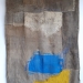 textielresten aagepoeld uit zee verwerkt op een herstelde jutezak, met borduurzijde, linnen en wollen draden